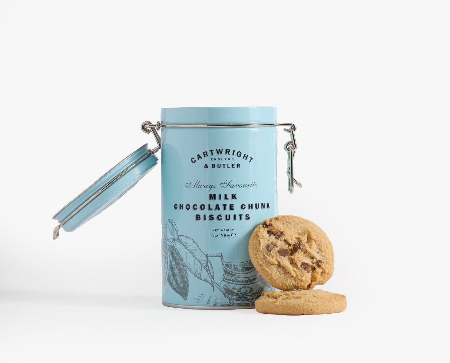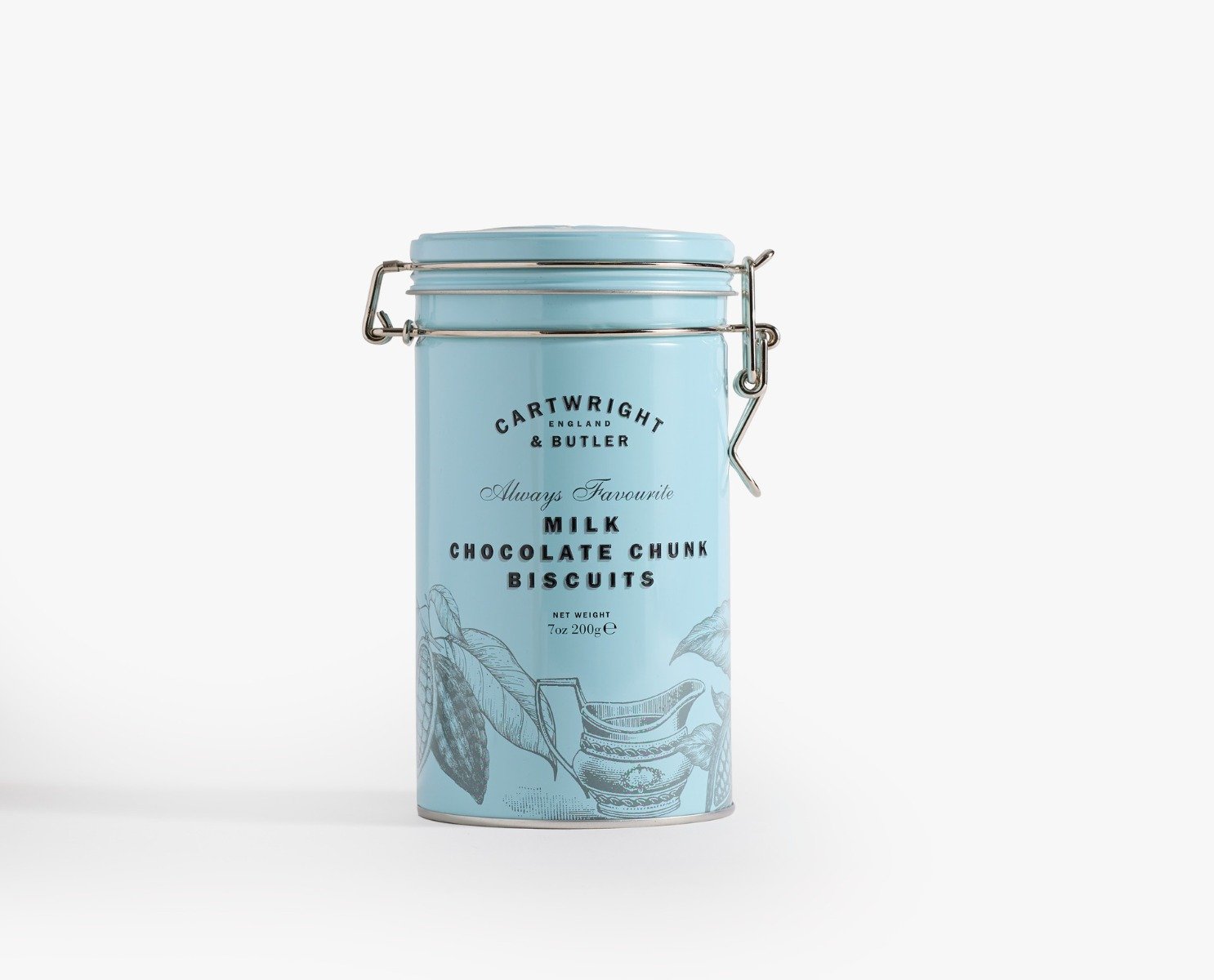 smooth milk chocolate. Brought to you in a reusable biscuit tin, complete with our signature clip-lid tin.