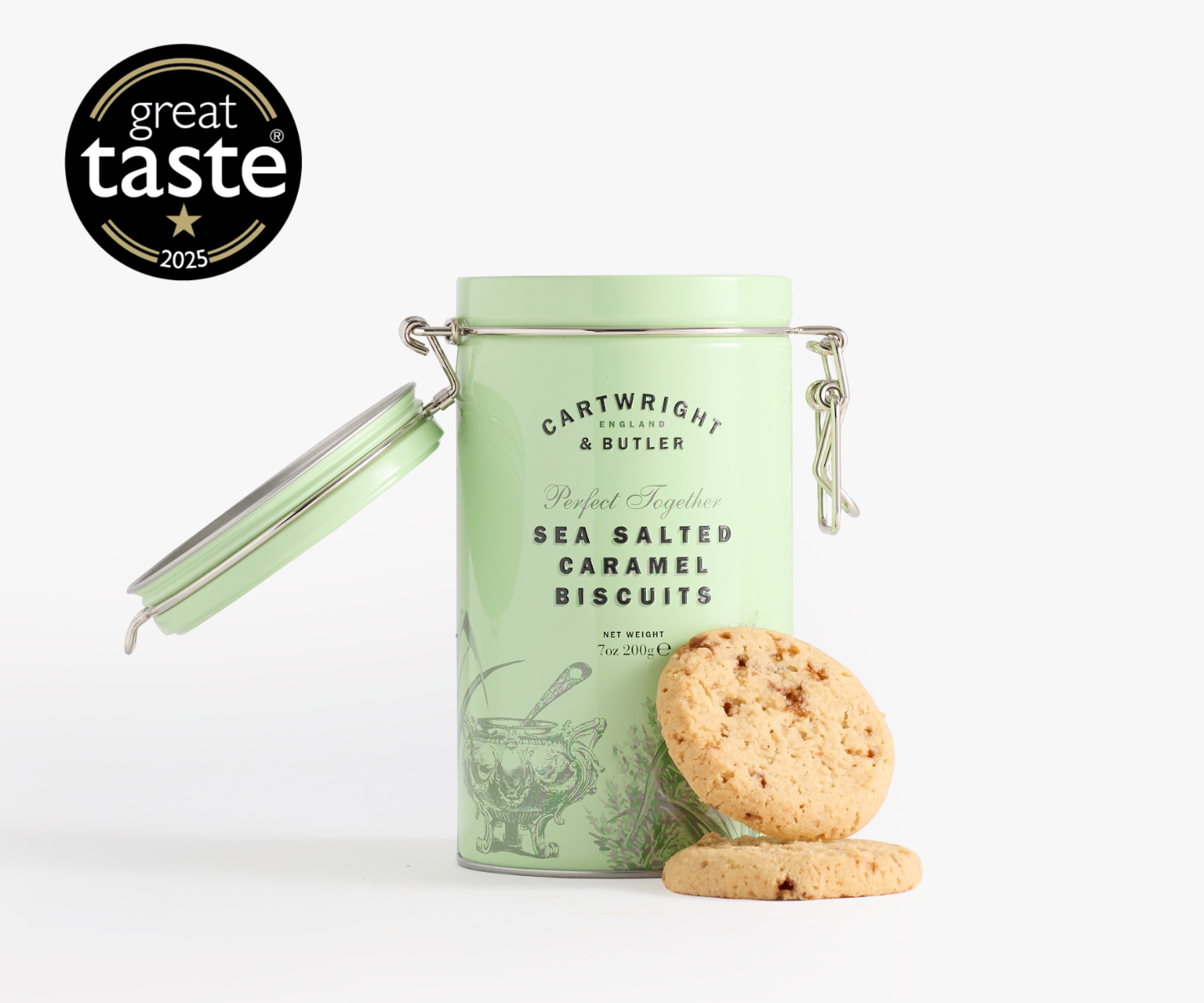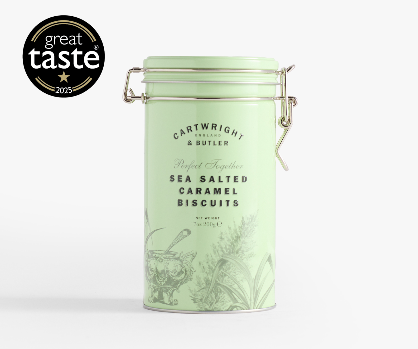 It seemed to us that that wonderful ingredient, salted caramel, was crying out to be used in a biscuit. And not just any old biscuit but one baked to buttery, crumbly perfection. It is with great pride that we can now offer you such a biscuit, presented here packed in one of our signature biscuit tins with clip-lid.