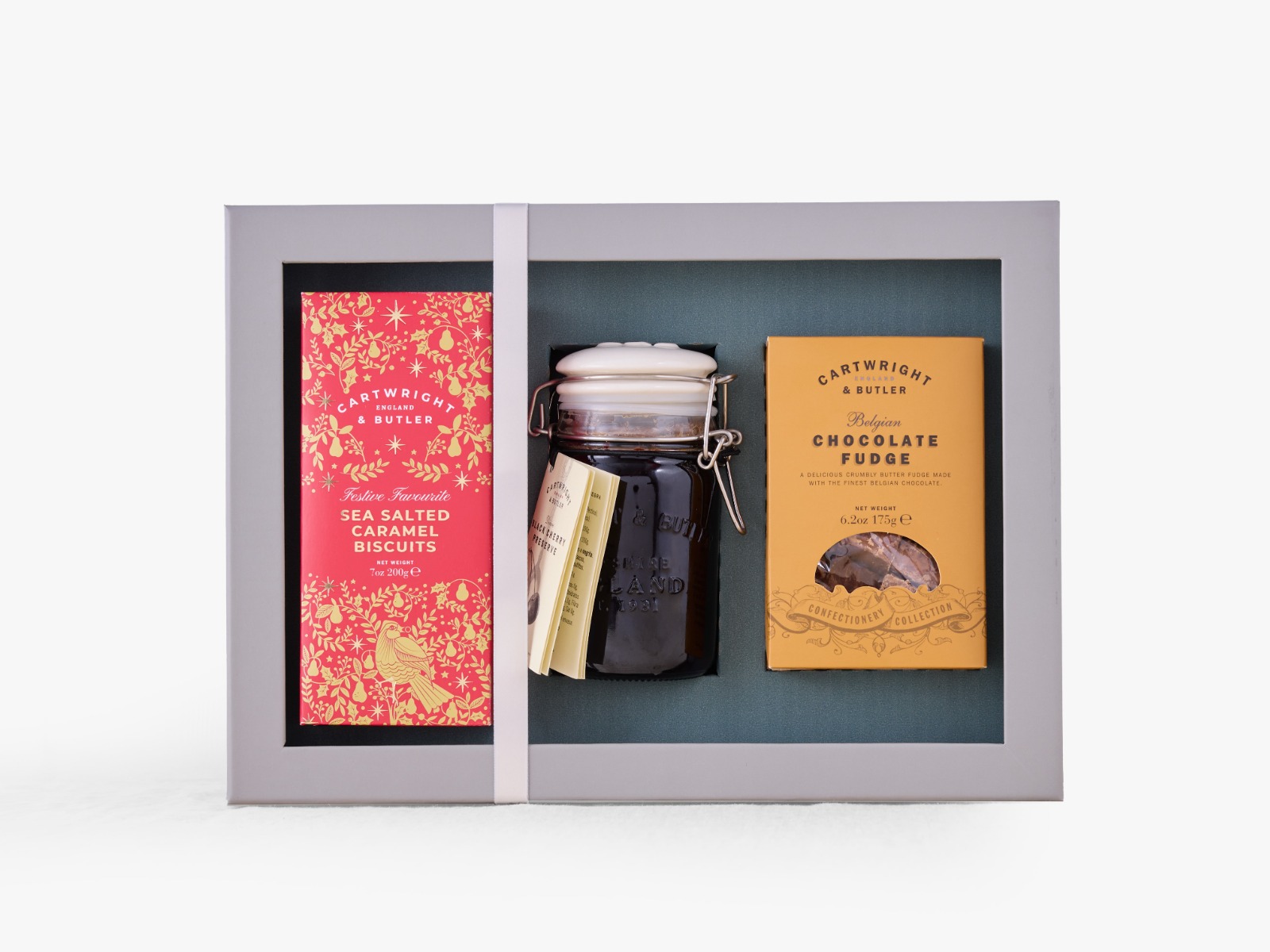 Bring joy to the season with Cartwright & Butler's Festive Cheer Gift Set, a heartwarming trio of indulgent treats crafted to delight this Christmas. This carefully curated collection captures the spirit of the holidays in every bite and spoonful.