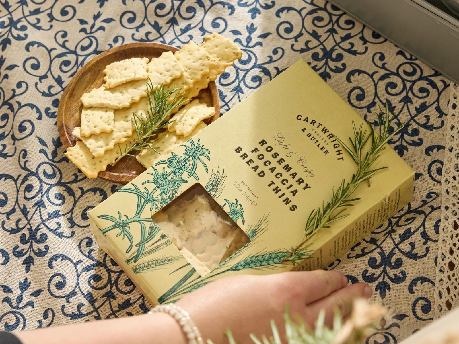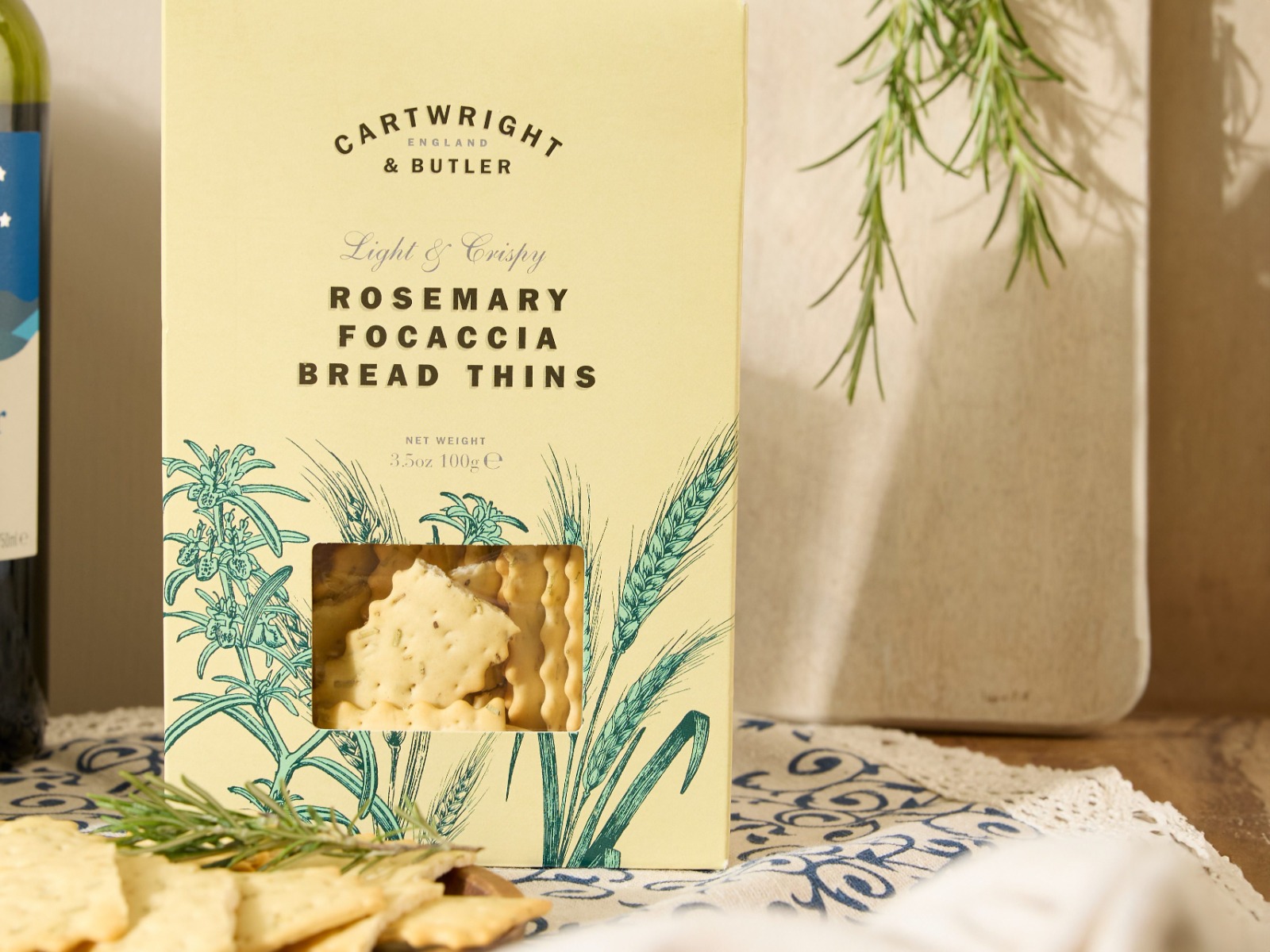 As the name suggests, these light and crisp bread thins have been inspired by that masterful Italian bread, focaccia, which is traditionally flavoured with rosemary and salt. Perfect with hard cheese, with dips or at the risk of creating an international dispute as, an alternative to the Scandinavian-style crispbread.