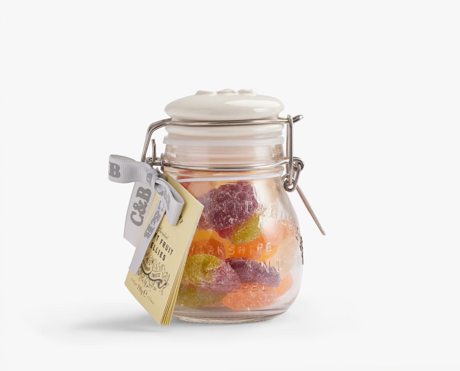 A clip-lid, ceramic top jar crammed full of soft fruit jellies made from real fruit and delicately dusted with sugar. These truly deserve their classic status amongst sweets.