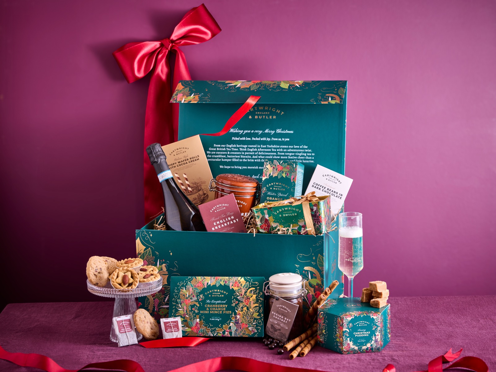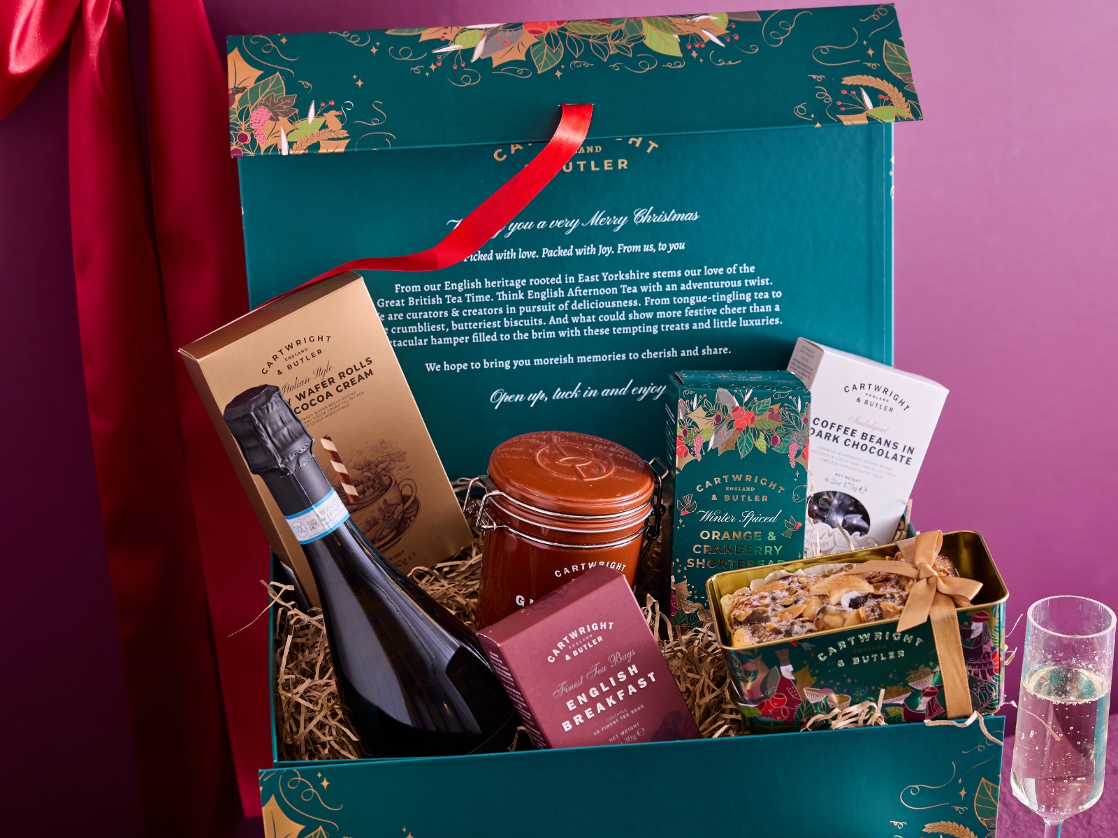 Pop the cork on this wonderful Christmas Gift Box. Bubbles flowing, whilst enjoying a slice of rich Christmas Cake or a festive mince pie, a nibble on some fudge or a taste of some buttery biscuits. This hamper makes a glorious Christmas gift.