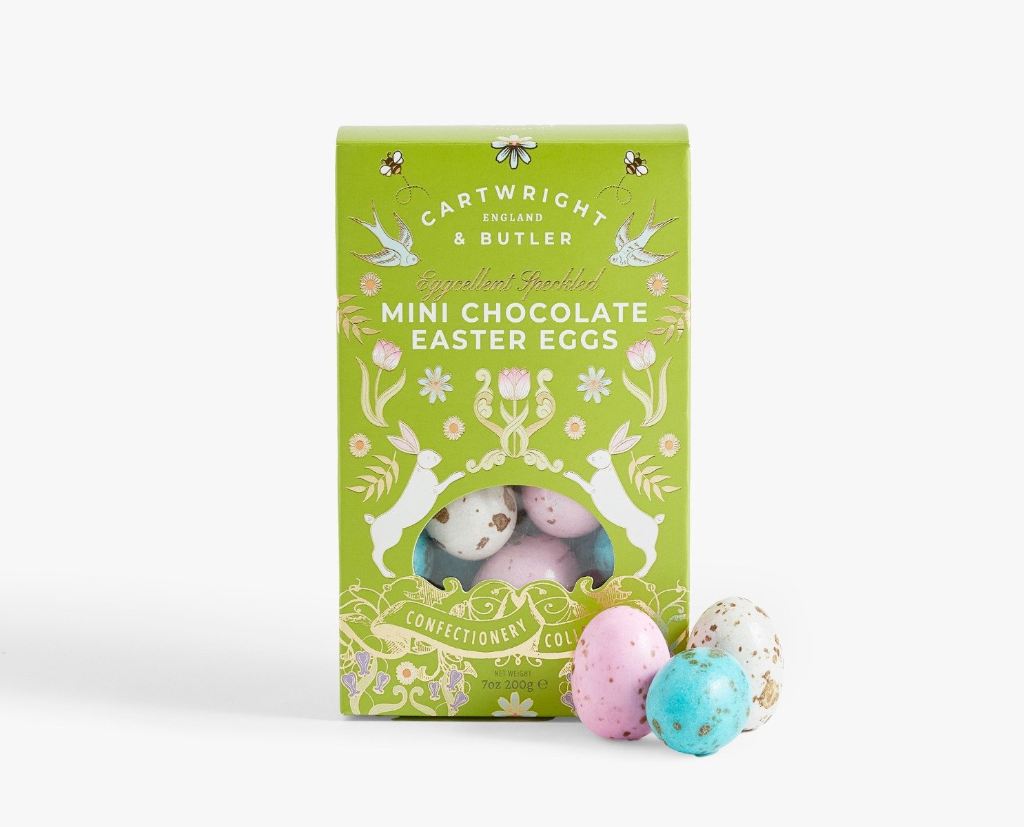 Our Mini Chocolate Eggs are delicious hazelnut & milk chocolate pralines encased in a crunchy coloured sugar shell.