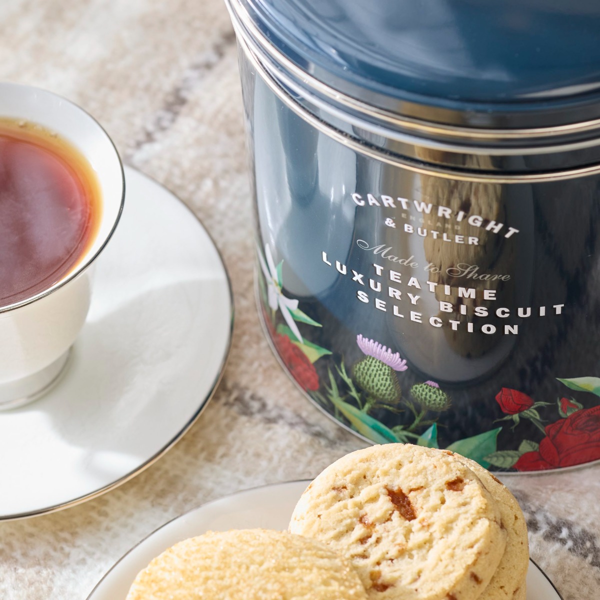 Beautifully presented in one of our signatures, clip-top biscuit barrels, are two of our most popular biscuits. A packet of legendary salted caramel biscuits and a packet of our all-butter Demerara topped, flaky shortbread complete with two of our finest teas, our English Breakfast blend and our Earl Grey. An ideal gift, if you can bear to part with it, that is.