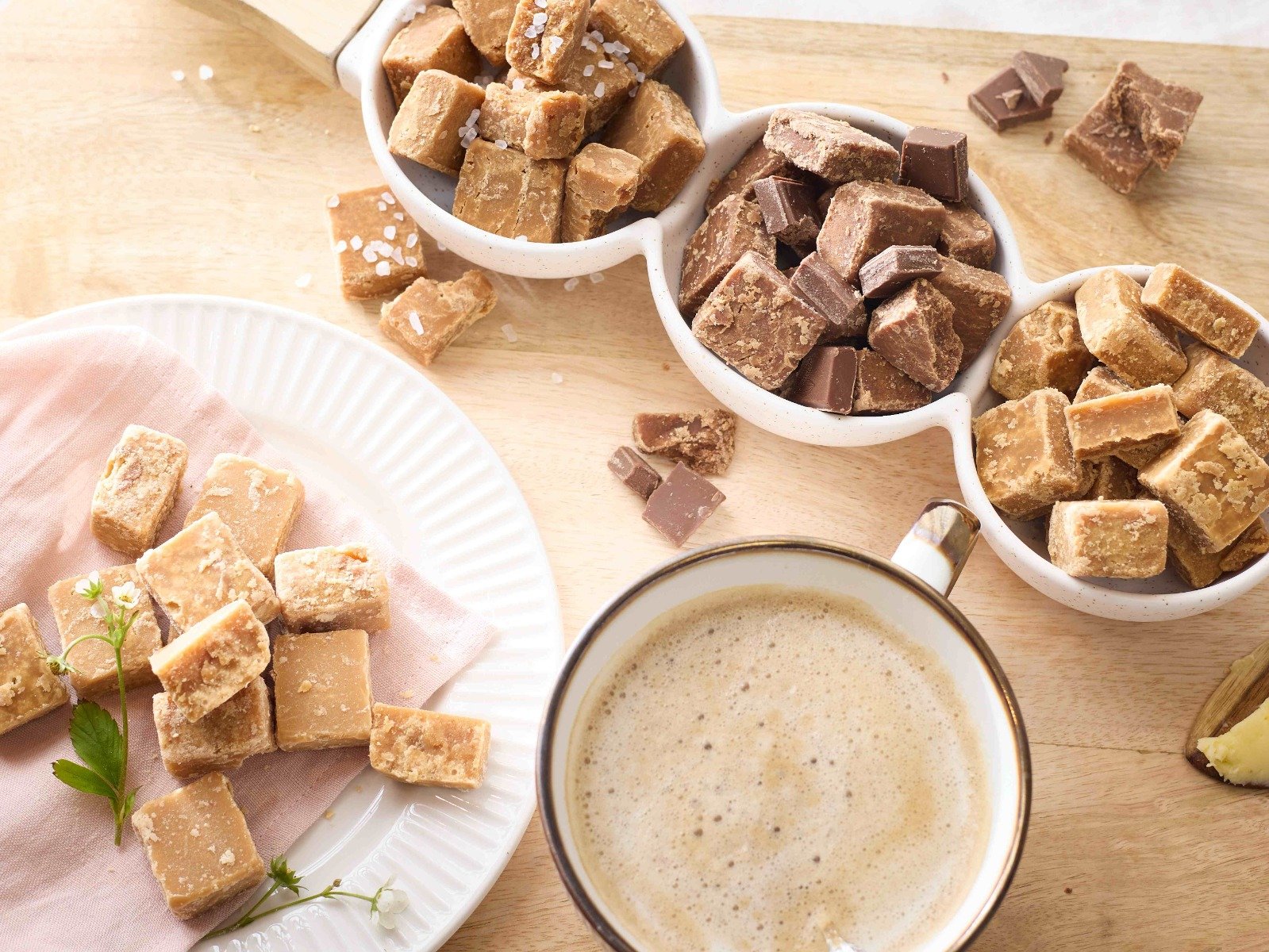 Sea Salted Fudge: Sugar, Sweetened Condensed Milk, Glucose Syrup, Butter (Milk) (10%), Golden Syrup, Humectant: Glycerine, Sea Salt (0.6%).