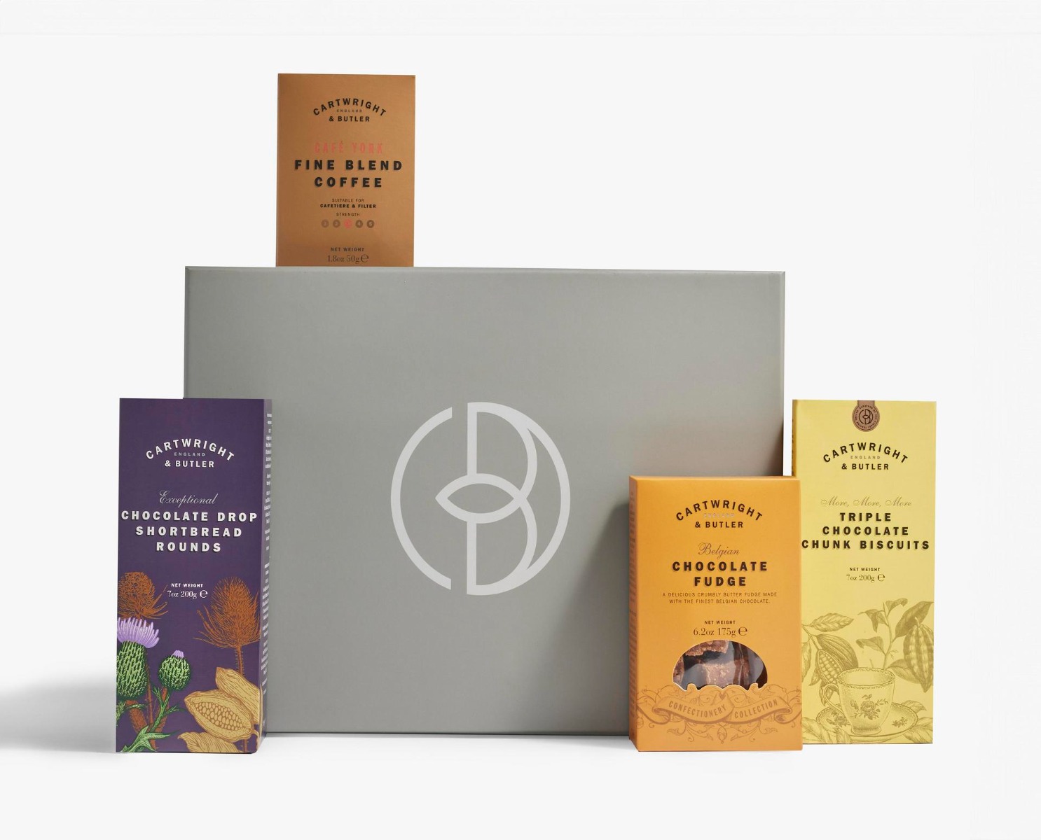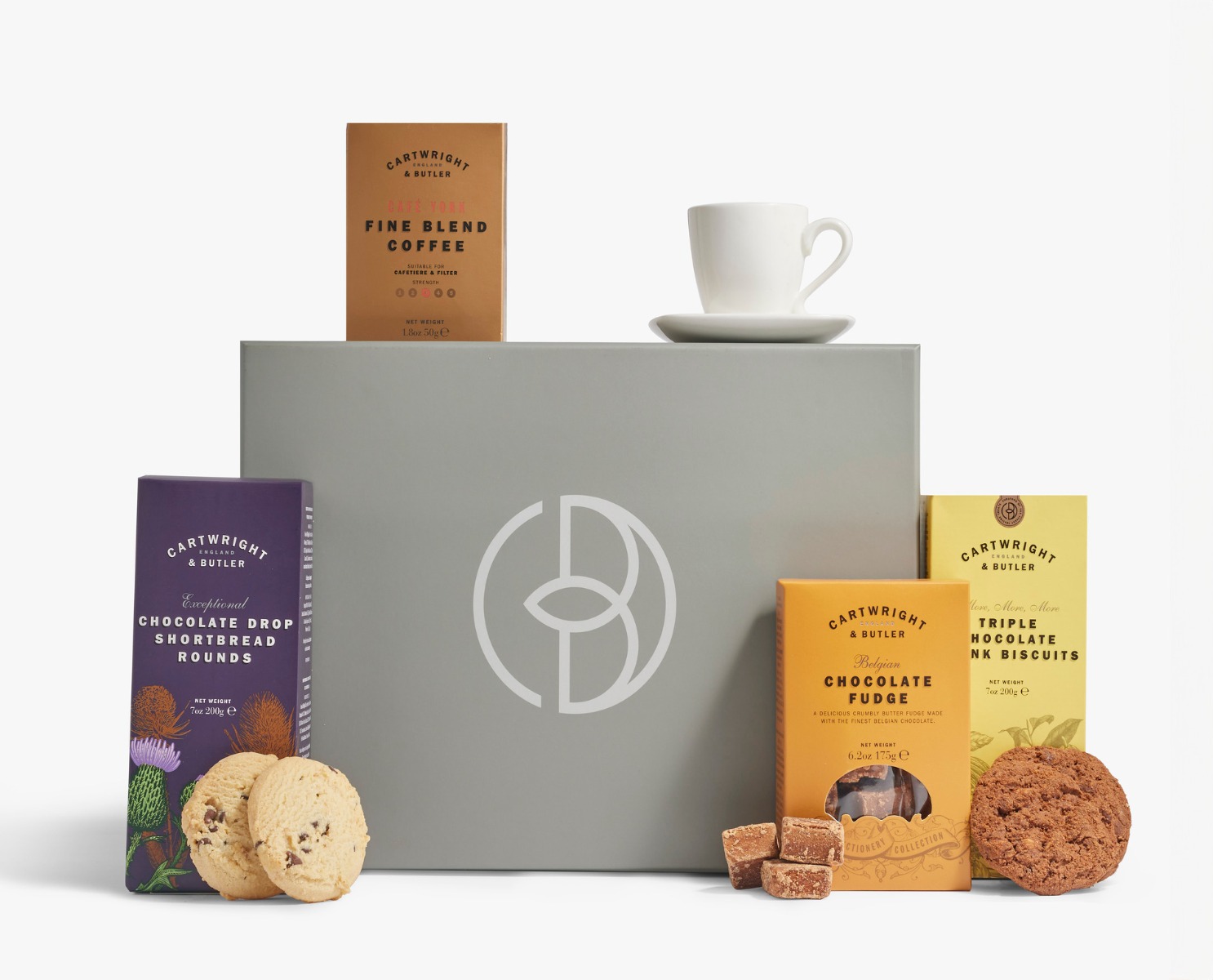 The Share a Treat Gift Set includes two of our best-selling biscuits, Triple Choc Chunk Biscuits and Chocolate Drop Shortbreads, as well as Belgian Chocolate Fudge and Café York Blend Coffee.