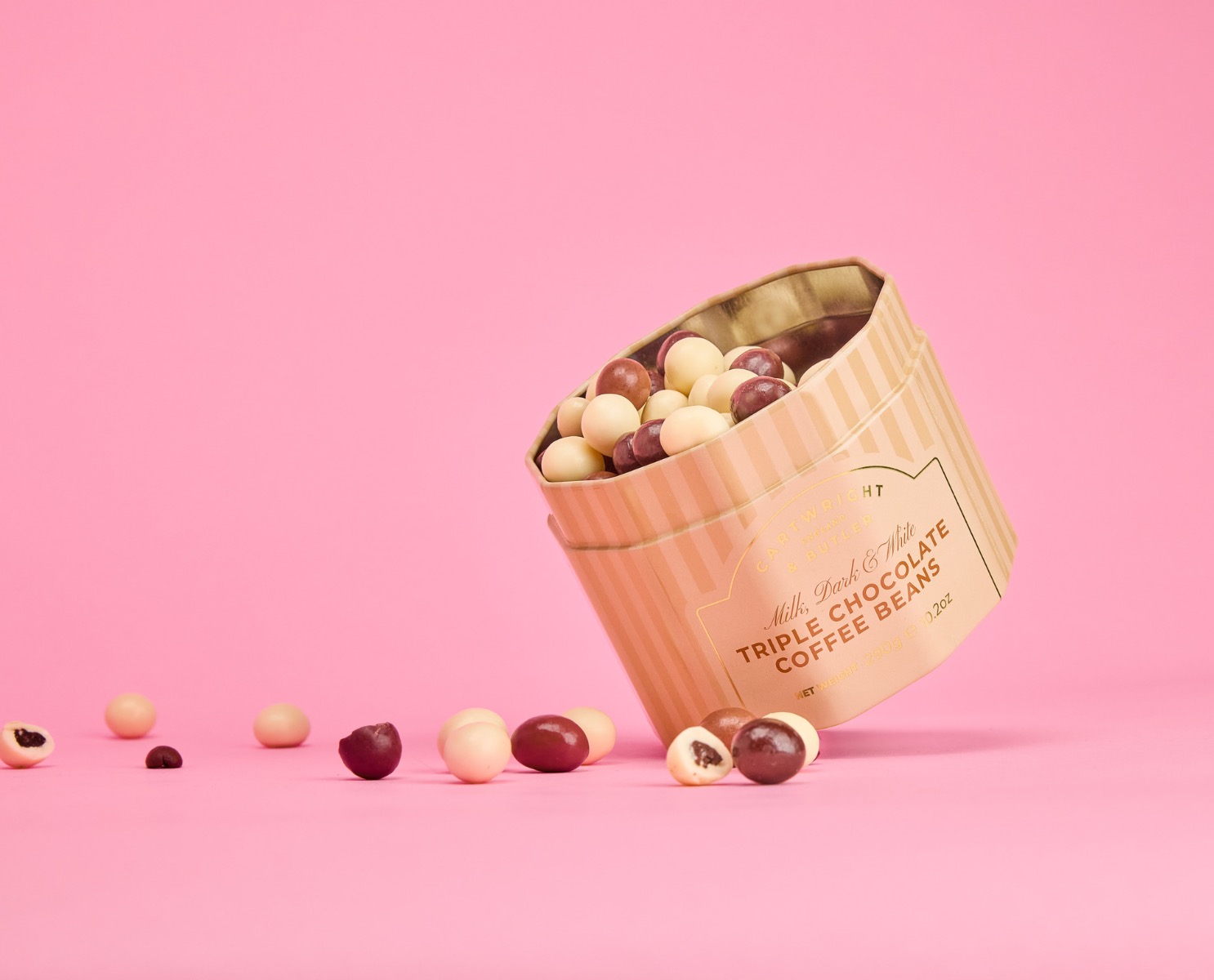 Dive into a blend of aromatic coffee beans and smooth triple chocolate with these coffee bean treats. Delivering the perfect combination of strong, fragrant coffee with melt-in-the-mouth white, dark, or milk chocolate. The contrast between bitter coffee and a finest-quality chocolate coating feels decadent. The caffeine from the whole coffee bean mixed with the sweeter edge of the chocolate coating, means these beans bring an extra kick wherever they’re served. You might be a coffee lover, or a chocolate lover – in either case, these triple chocolate coated coffee beans bring a flourish to any after-dinner experience. Presented in a beautiful tin, these little indulgences would also make the perfect gift.