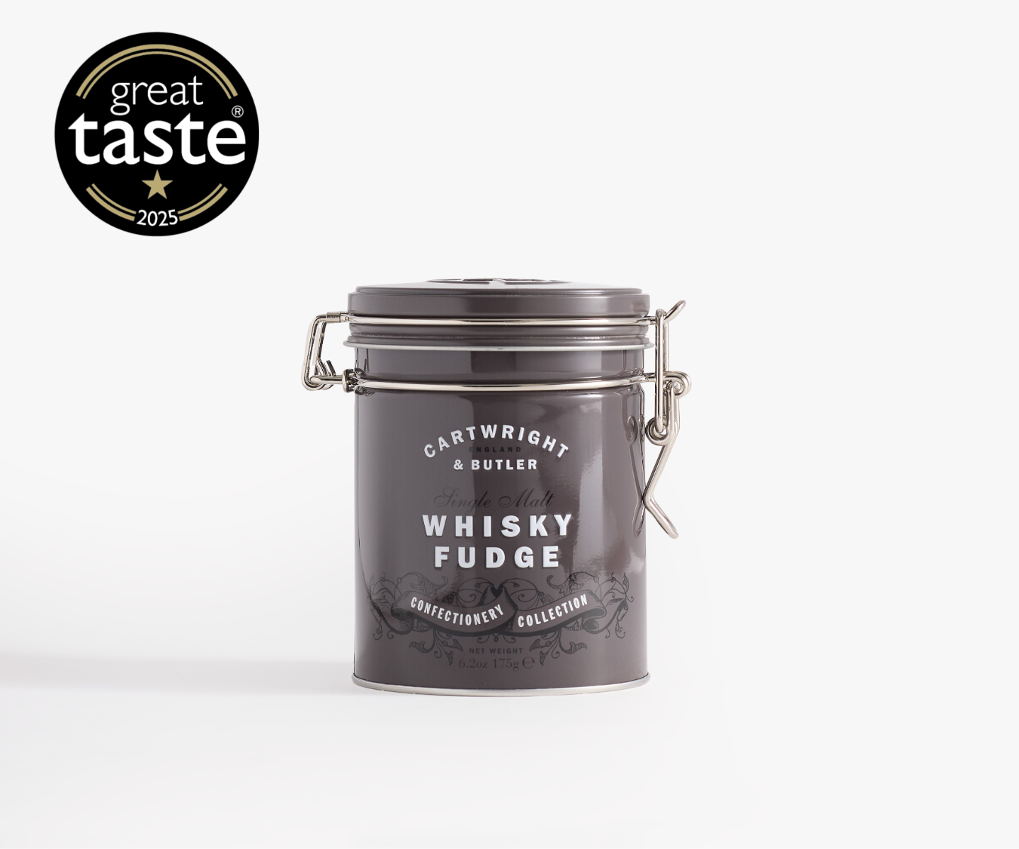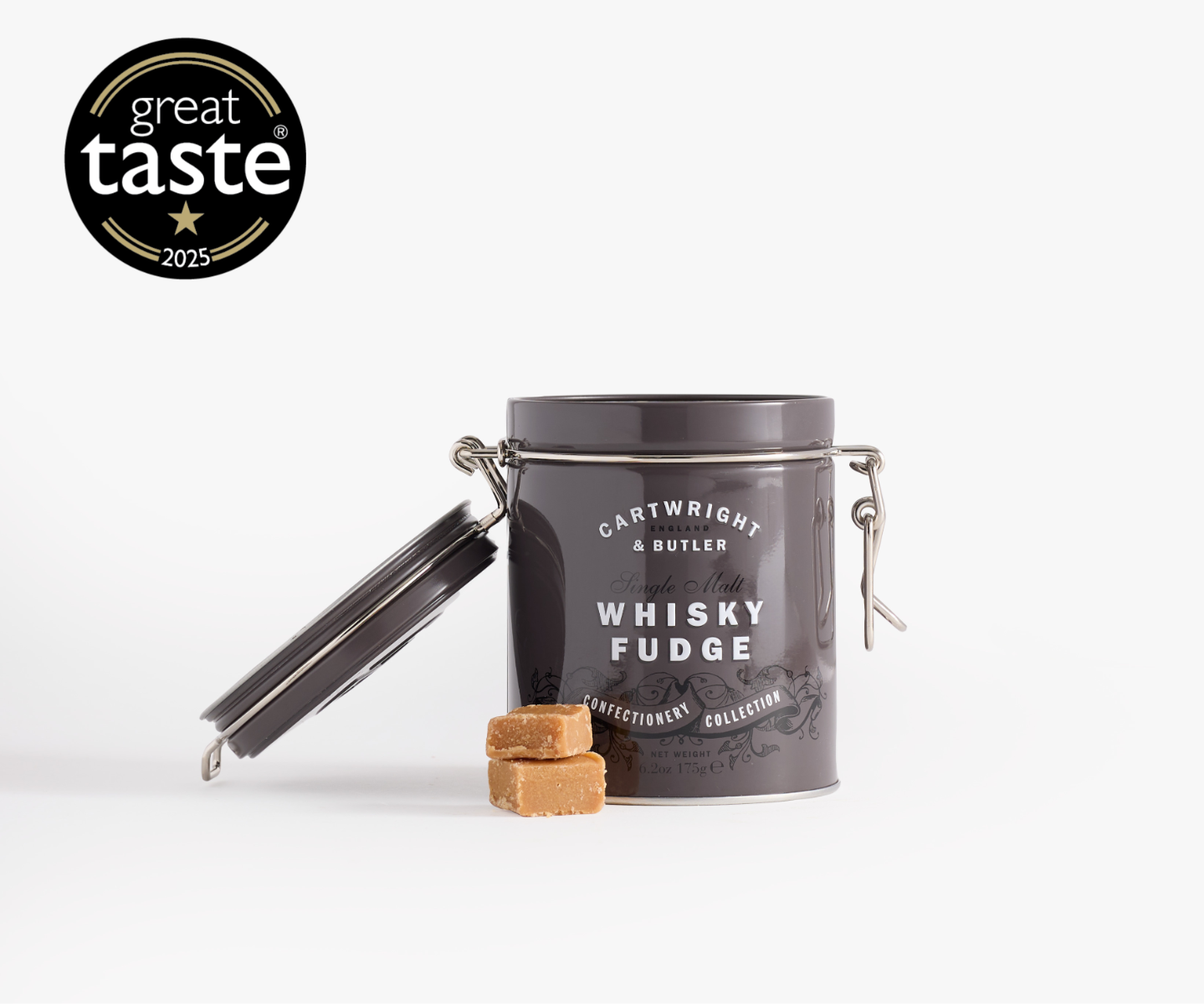 The latest addition to the Cartwright & Butler fudge selection, the deliciously creamy Malt Whisky Fudge melts in the mouth. Made with real butter and to a traditional Scottish recipe, the brand new recipe blends the smooth flavour of only the very best Malt Whisky. Our Whisky Fudge is secured inside one of our beautifully-designed Cartwright & Butler clip-top tins offering a wide range of reusability, such as storing tea bags and biscuits.