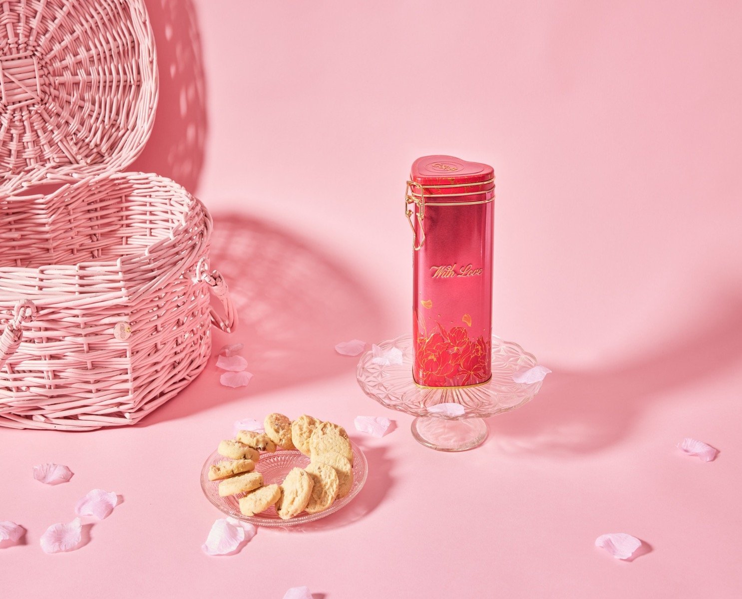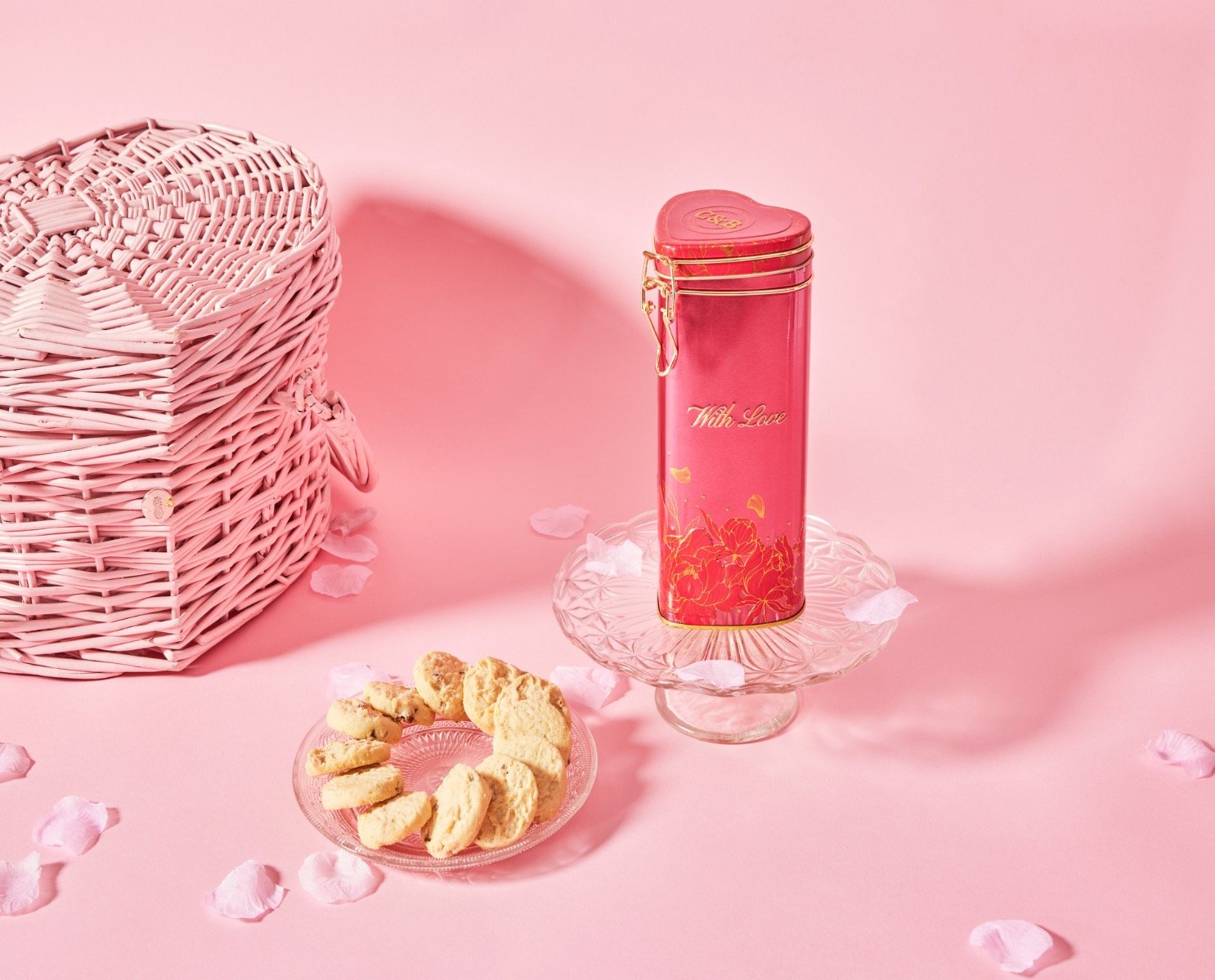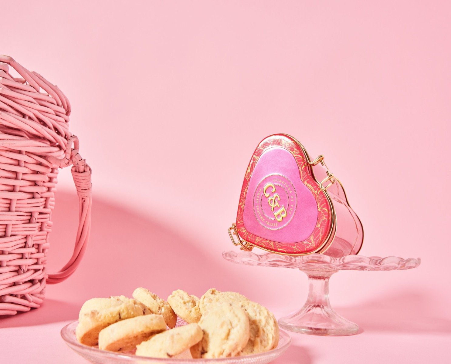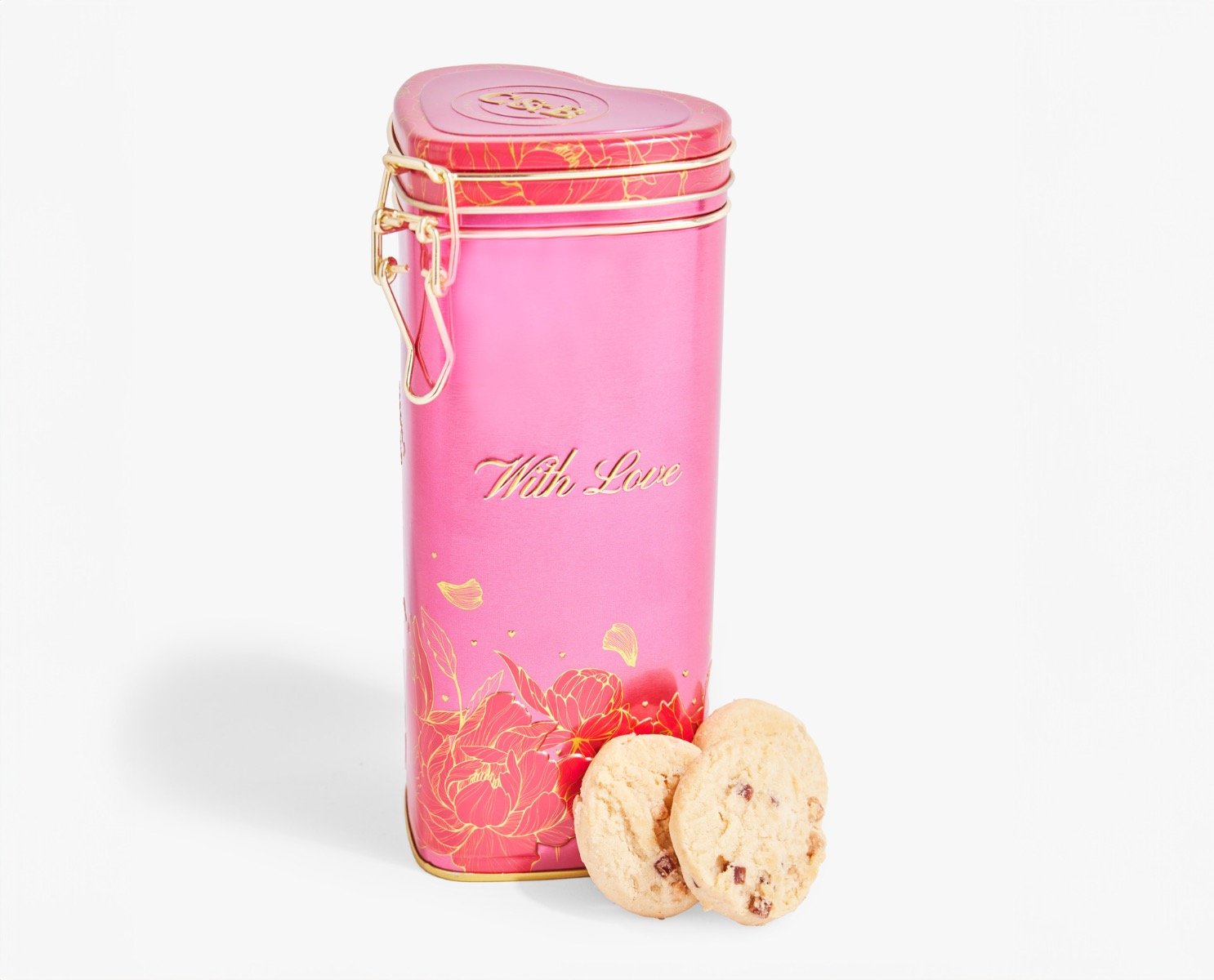 With Love Strawberry & White Chocolate Biscuits in Heart Shaped Tin