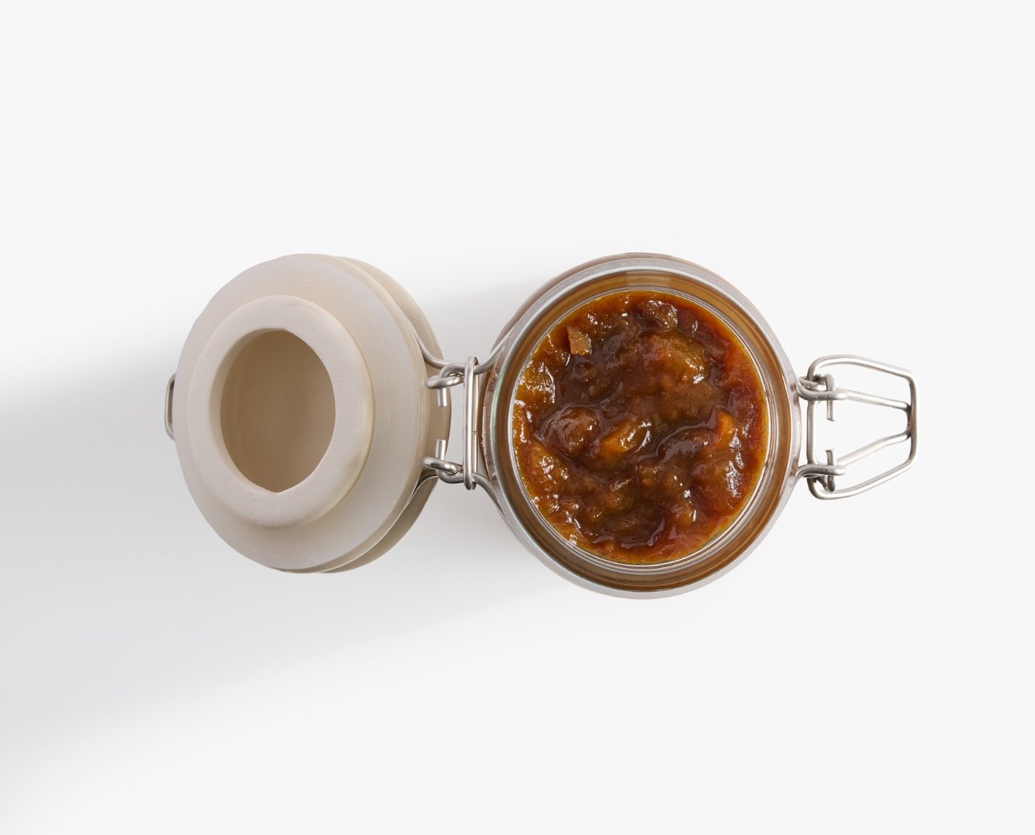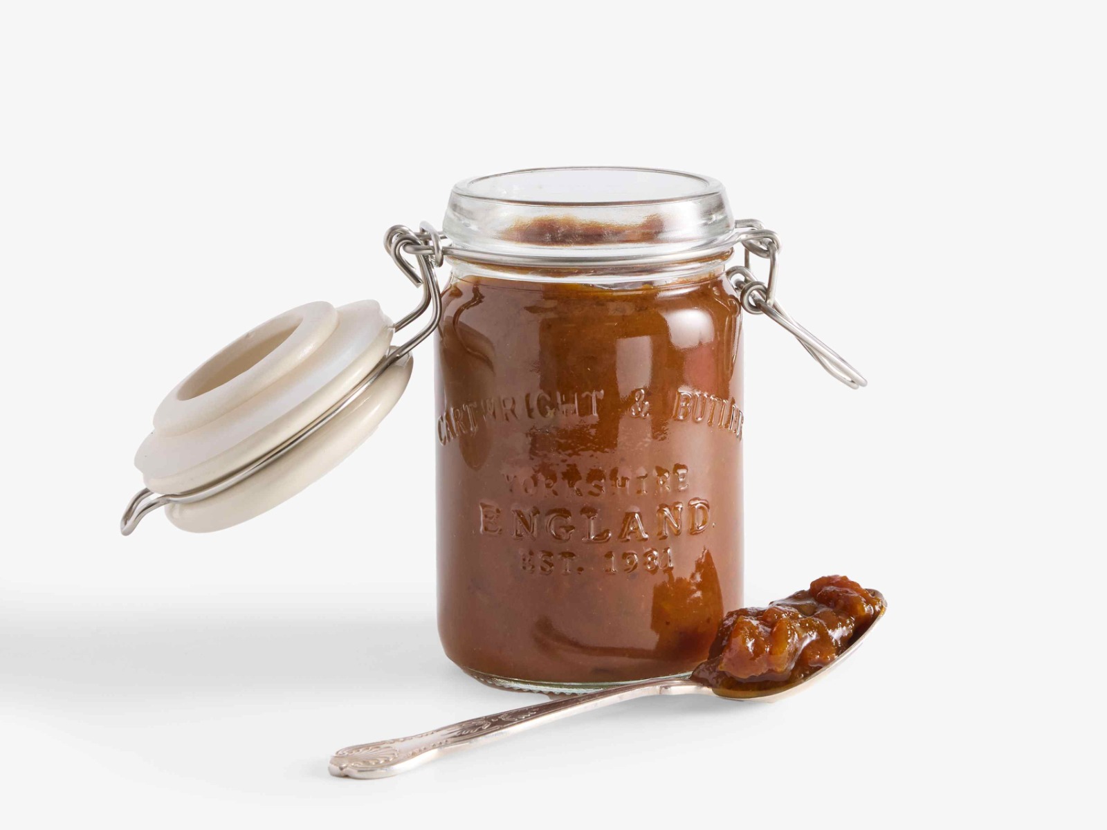 Apple (23%), Sugar, Swede (12%), Carrot (12%), Onion (8%), Spiced Malt Vinegar (BARLEY Malt Vinegar, Spirit Vinegar, Acidity Regulator: Acetic Acid; Flavouring), Tomato Paste, Maize Starch, Colour: Ammonia Caramel; MUSTARD Flour, Turmeric, Ground Ginger, Salt, Chilli Powder.